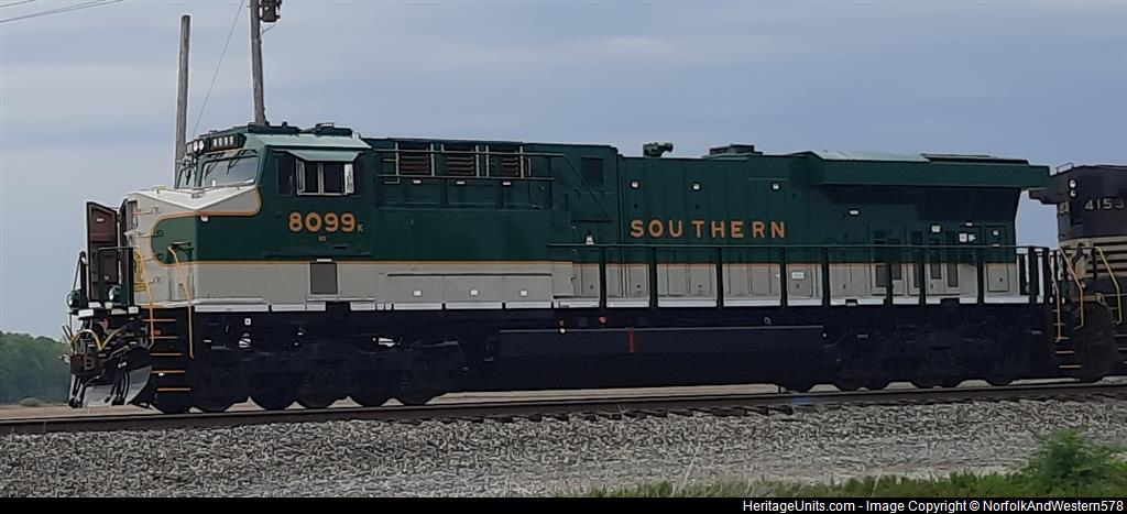 NS 8099 (Southern) leads NS 746 passed Linn-Hipsher Rd, looking beautiful with new paint job.