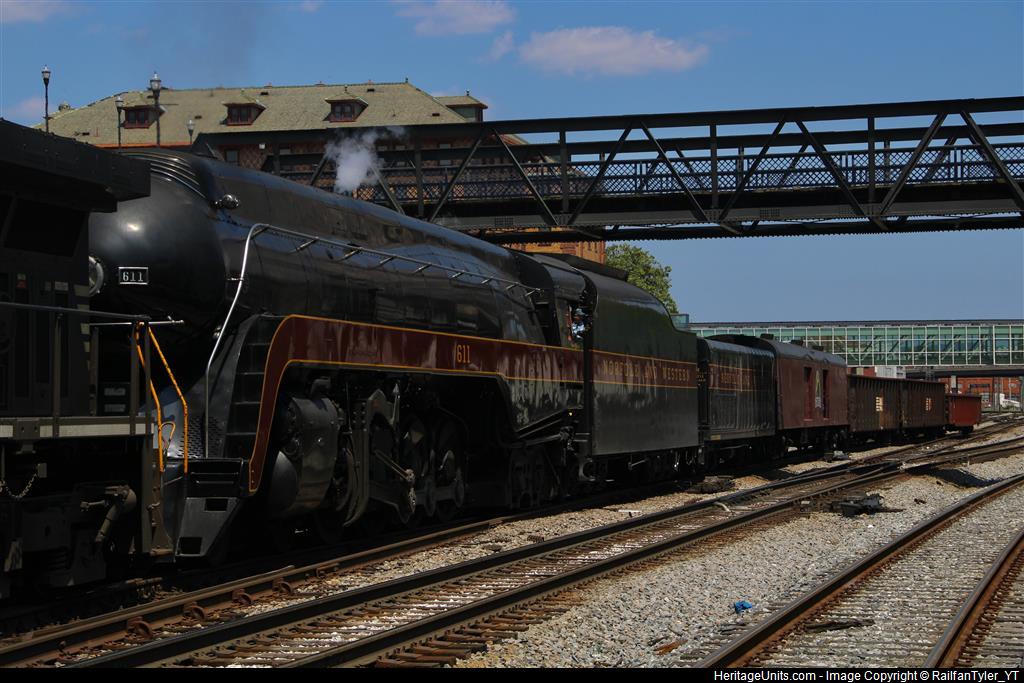 Ns 958 arriving at Roanoke with N&W 611 in tow