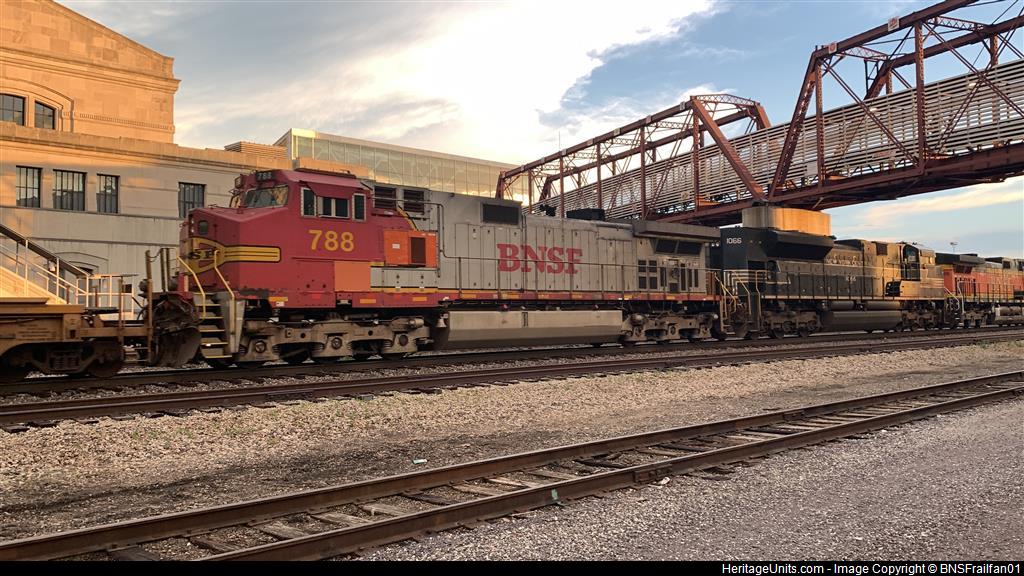 BNSF 788 trails 5th of 5 on the ZWSPSBD at Kansas City Union Station.