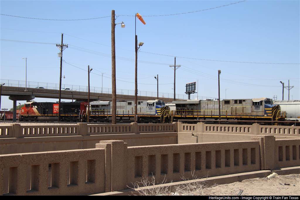 CN trio sitting at the Amarillo north yard after arriving on G SUPAMA