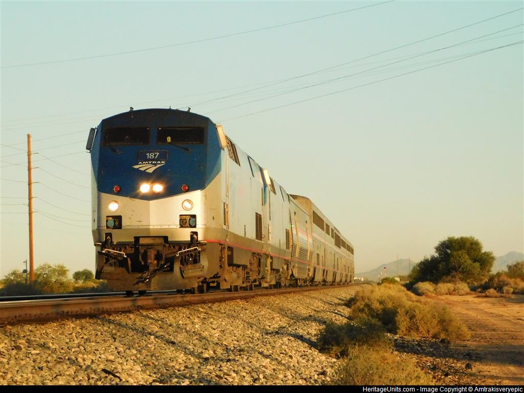 AMTK187 leads Amtrak's Sunset Limited #2 Through Casa Grande, Arizona