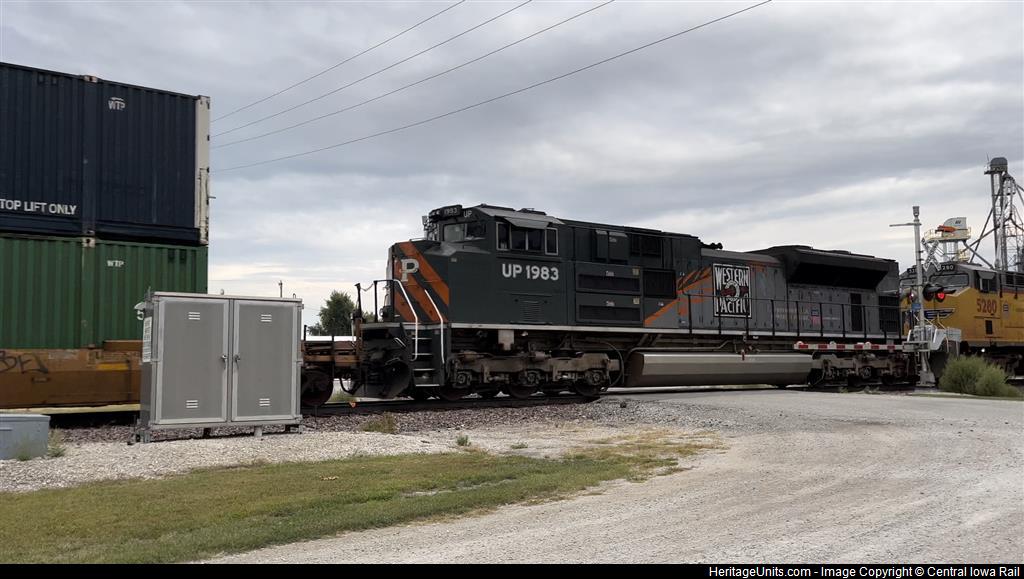 UP 1983 trailing third on IG2LC doing track speed about 60 MPH at Elkhart.