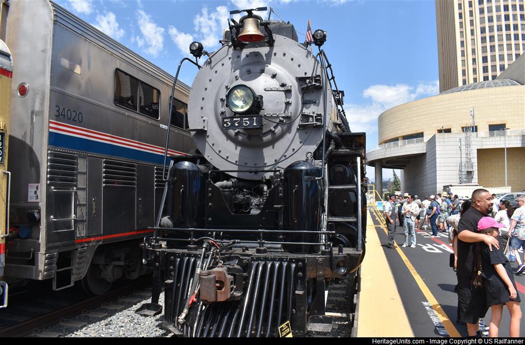 ATSF 3751 sits tied down at Los Angeles Union Station of Track 15 for Trainfeat/Train Festival 2023 Day 1