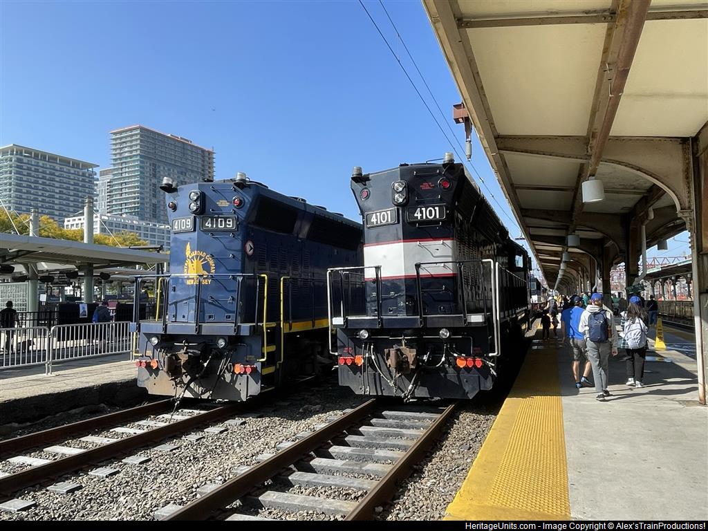 4101 and 4109 sitting in Hoboken for the heritage event. Photo taken from behind the locomotives due to sun glare.