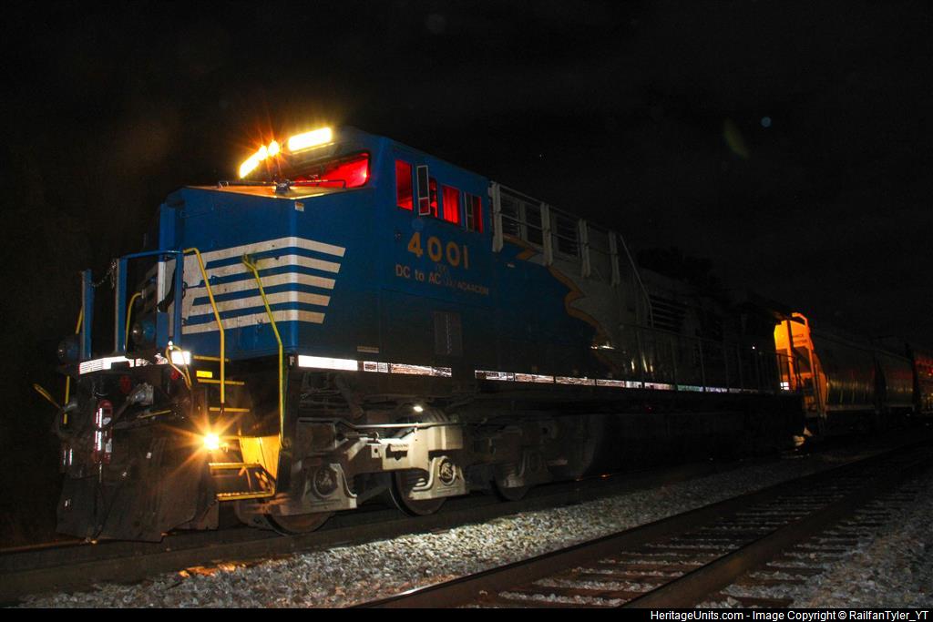 Ns 4001 as a rear DPU ON 126. Stoped for head end to do a cut off in the yard.