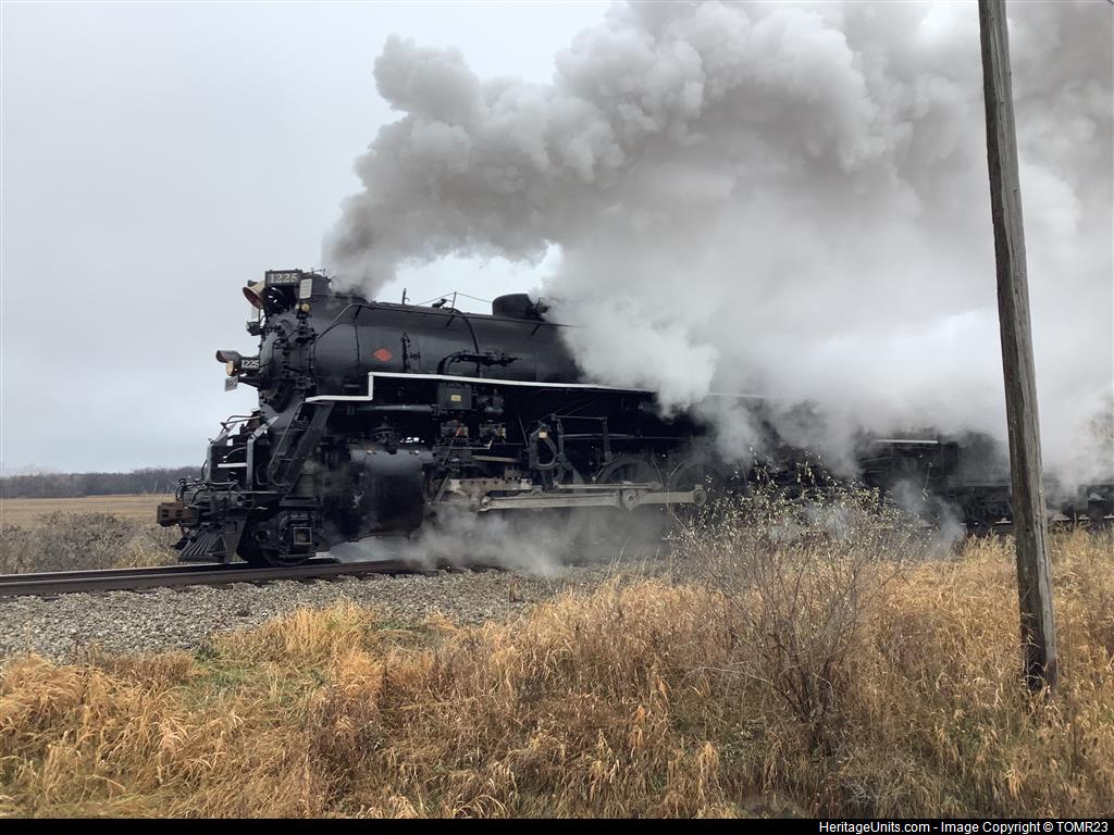 Arriving in Ashley, passing McClelland Road. First time seeing 1225 running on the rails.