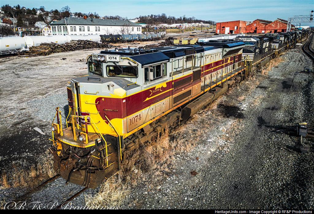NS SD70ACe #1074, the Lackawanna Railroad Heritage Unit, sitting in a deadline in Altoona, PA.
