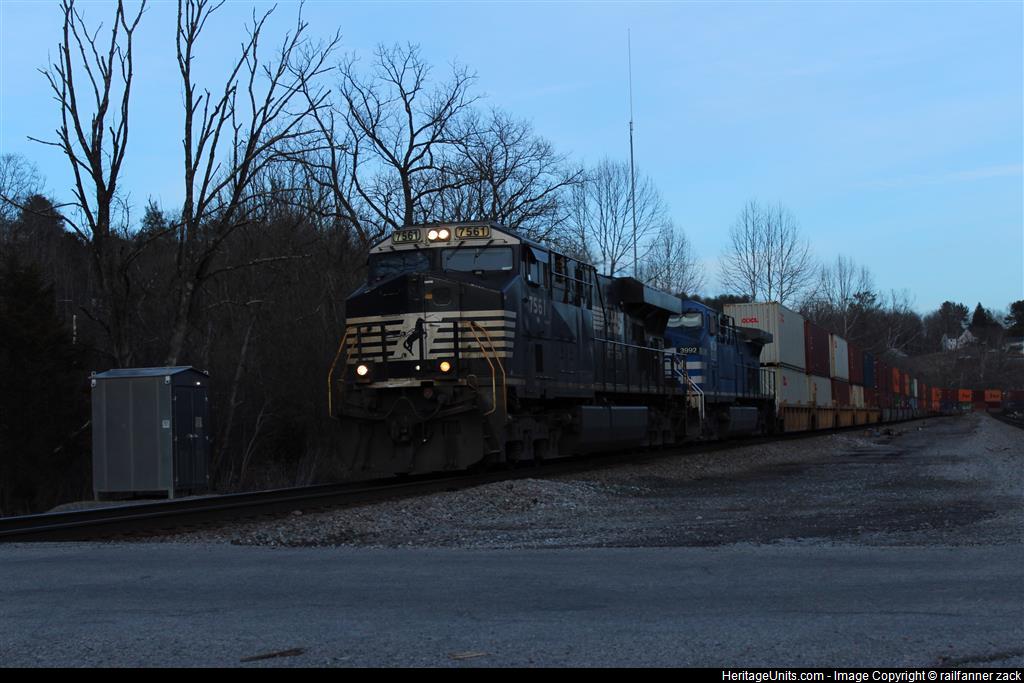 NS 7561 and NS 3992 lead NS 277 through Vicker, VA to Chicago, IL.