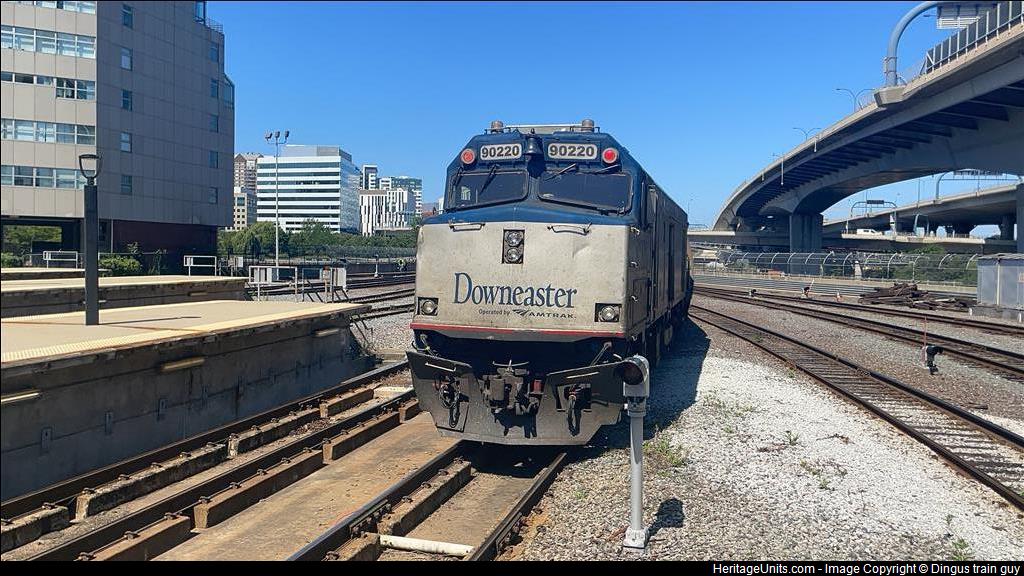 Downeaster pulling out of north station on a sunny day
