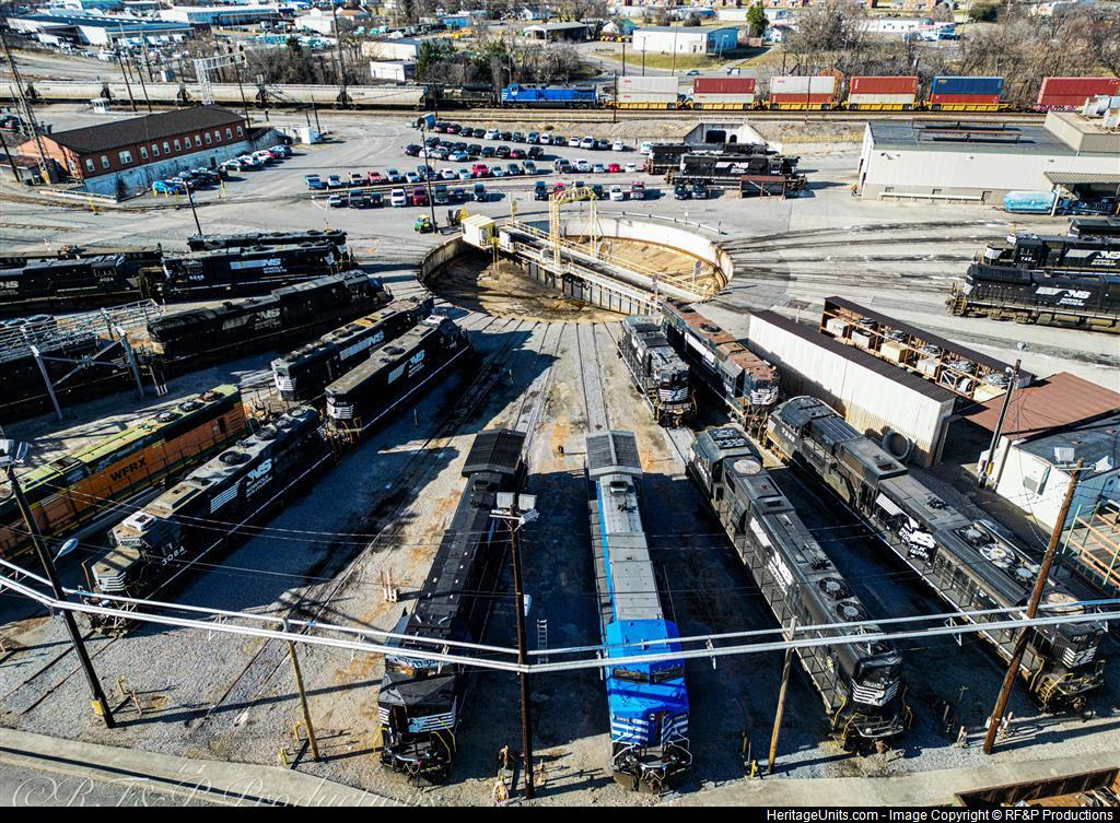 Two Ex-CEFX NS AC44CWs, 3991 and 3992, are pictured in Roanoke, VA. 3991 is sitting outside the turntable while 3992 is trailing on 277 as they change crews at 24th Street.