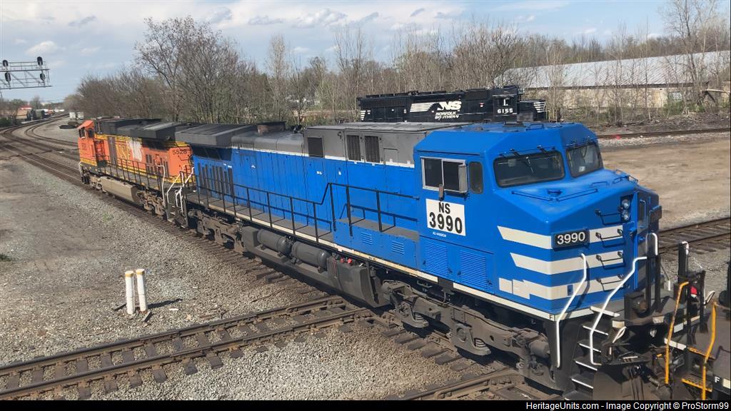 Trailing second on Ns 117 with a Bnsf H2 leading and a Ns SD40-2 Trailing 3rd of 3