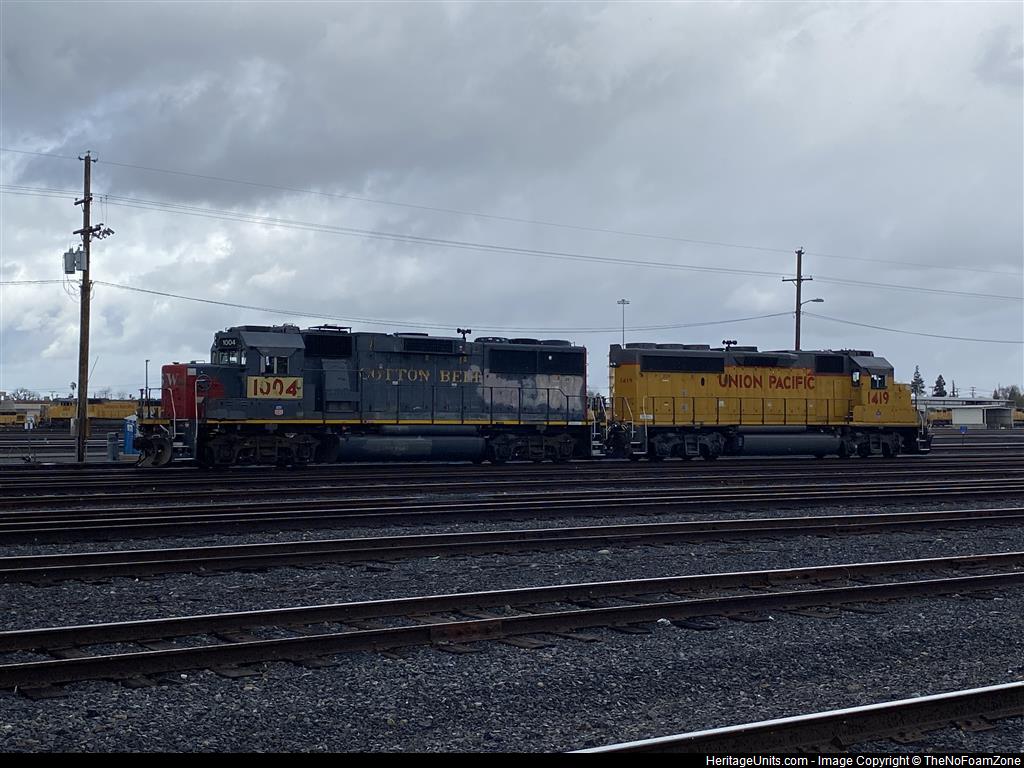 UP 1004 sitting with usual companion, UP 1419. It was sitting off of Vernon St, crew-less in the cold rainy day. It sounded on, which also meant it was going to do LRR45 that day.