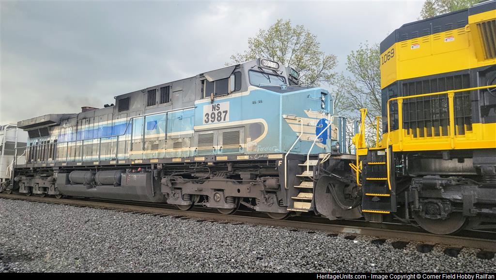 NS Virginian Heritage 1069 leading with NS ex. CMQ 3987 trailing 2nd. This unit was originally number 1002.
