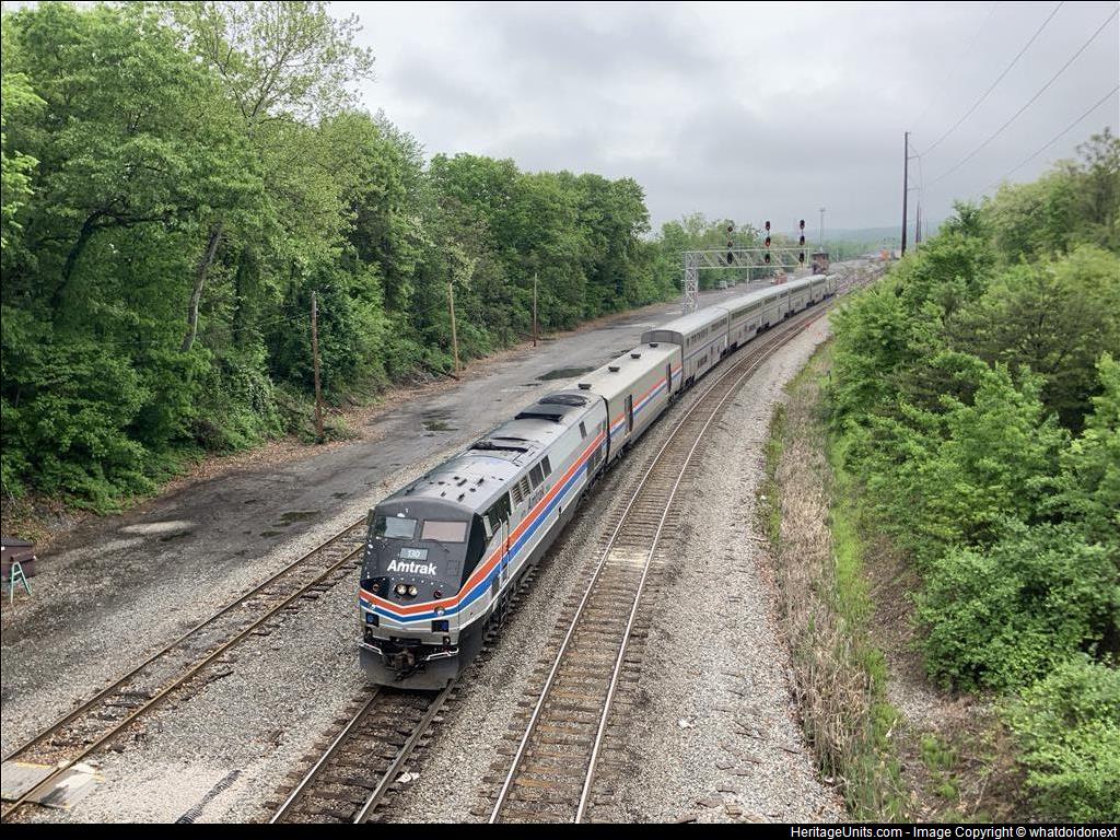 Train 30, the capital limited, it just crossed over from one to two and has passed Mexico tower heading east