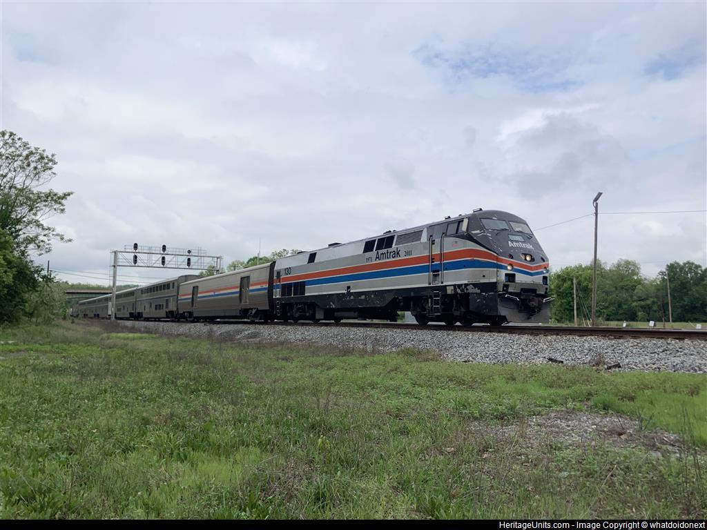 Amtrak 30 with Phase II locomotive 130 heading east through Hancock