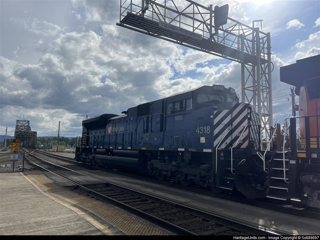 MRL 1418 trails 2nd on a light engine move