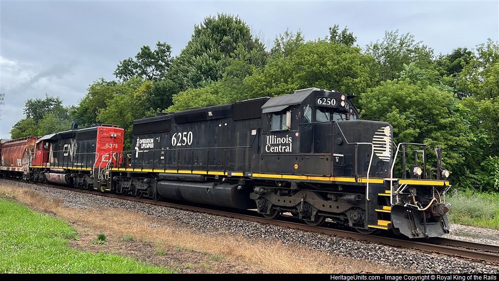 IC6250 leads CN L521 through Schoolcraft Michigan on the CN South Bend Sub