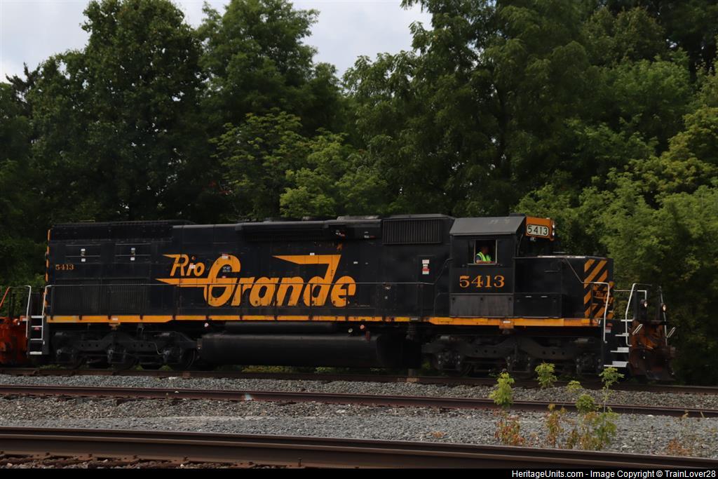 WE 5413 was leading a ballast train going eastbound with WE 7011 trailing 2nd