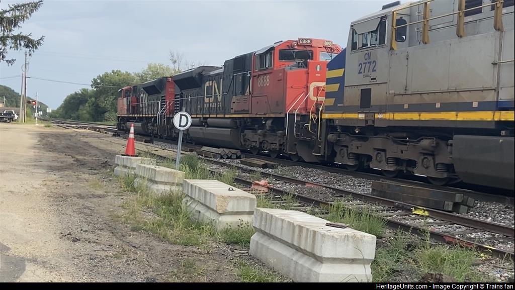 Saw CN 2772 Trailing a CN oil going Through East Dubuque Illinois