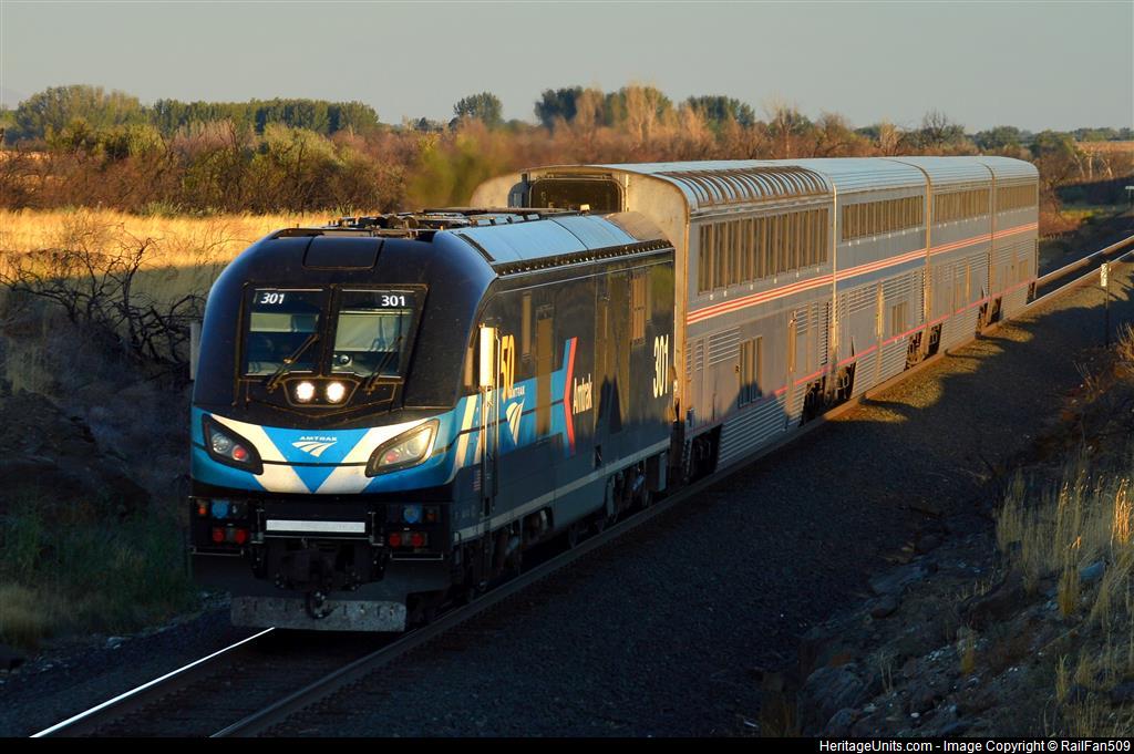 Amtrak 301 Leads Empire Builder 27 outside of Finley, WA