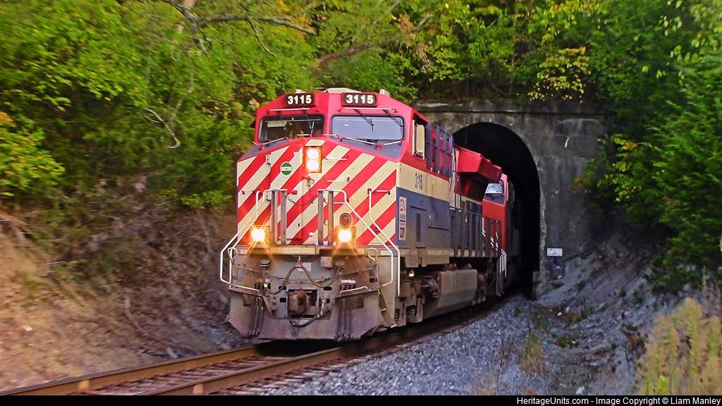 CN 3115 leads CSX B241 coming out of the tunnel