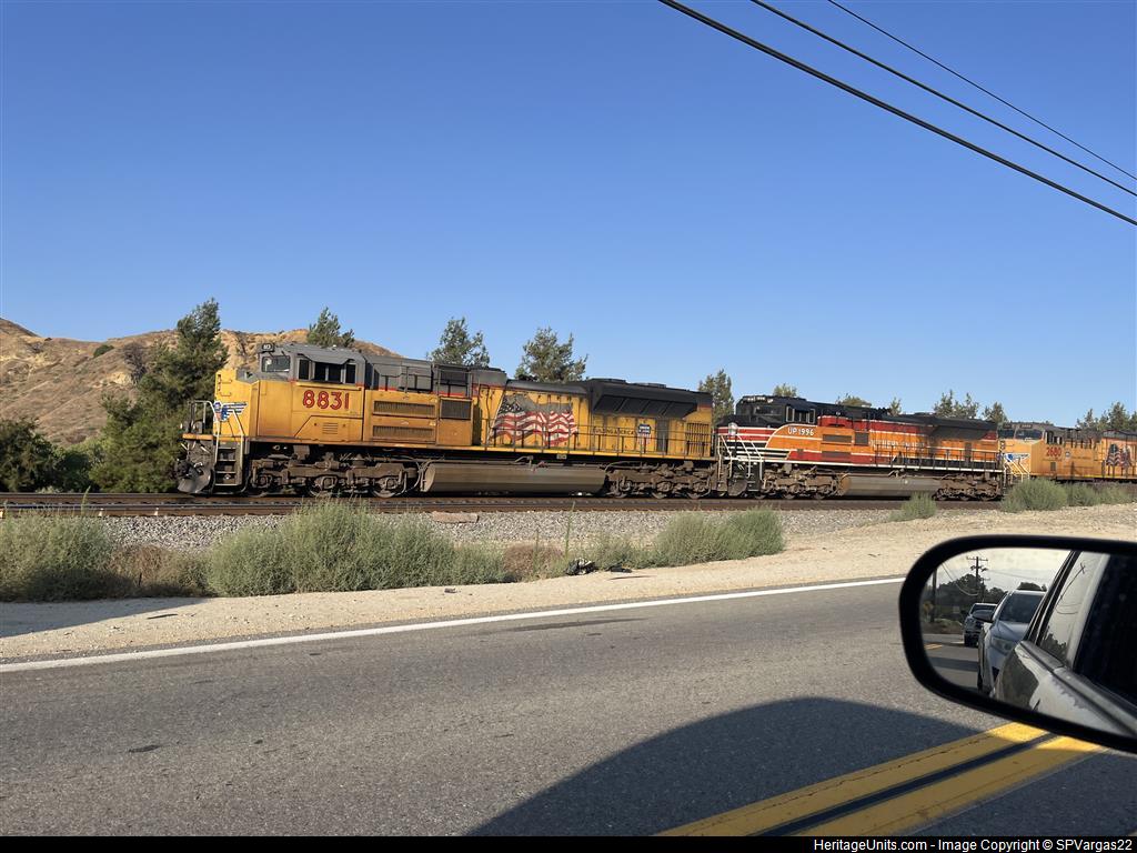 UP 1996 “SP Heritage Unit” trailing second on a WB intermodal descending San Timoteo Canyon heading towards West Colton Yard