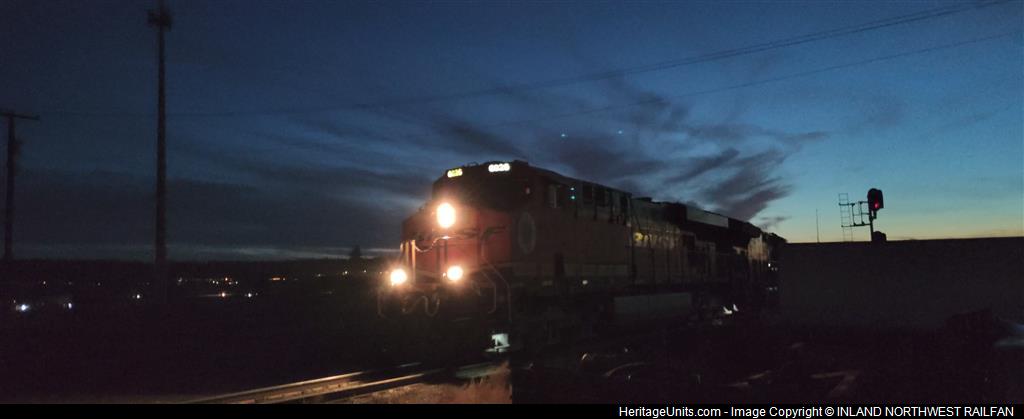 BNSF 6026 leading going into old main in Spokane WA