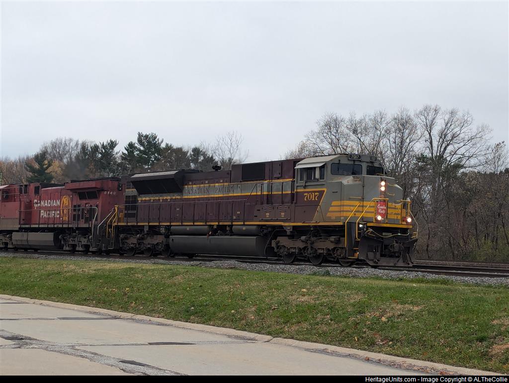 CP 7017 SD70ACU in the lead of CSX I166 heading East passed the depot with a CP AC44CWM trailing out.