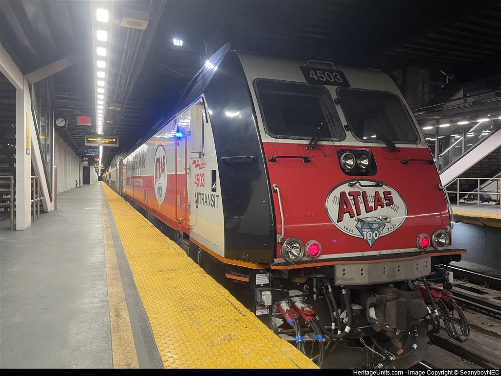 NJ Transit ALP-45DP 4503 sits on Track 7 after completing a trip trailing