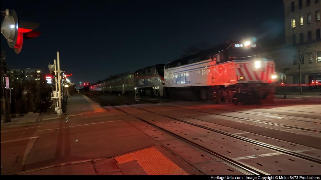 METX104 leads and METX79 trails Outbound Metra Train #69 as it makes its scheduled stop at Elmhurst Metra Station. It had a nice meet with Inbound Metra Train #70.