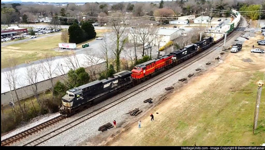 NS 8114 trailing 2nd behind the the white face leader NS 9770! Used my drone to get the shot of both of them going under the old Southern signal!