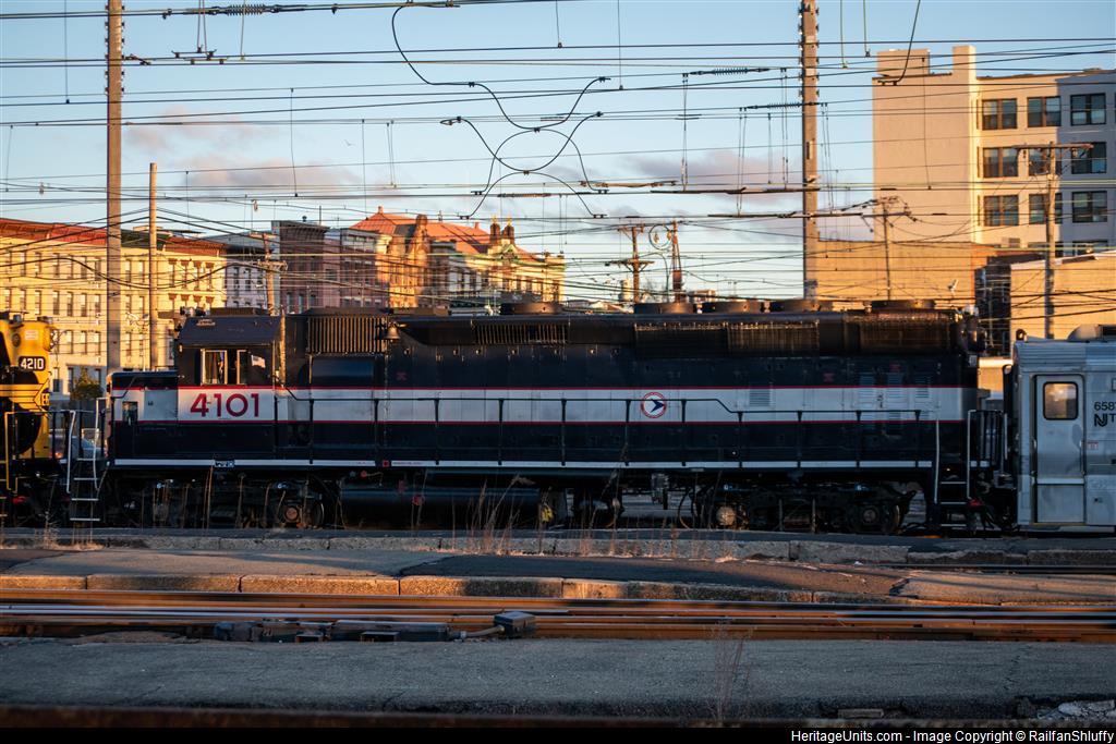 NJT 4101 sits on track 8 behind the 4210 waiting to run the Railmen for Children Santa Train.