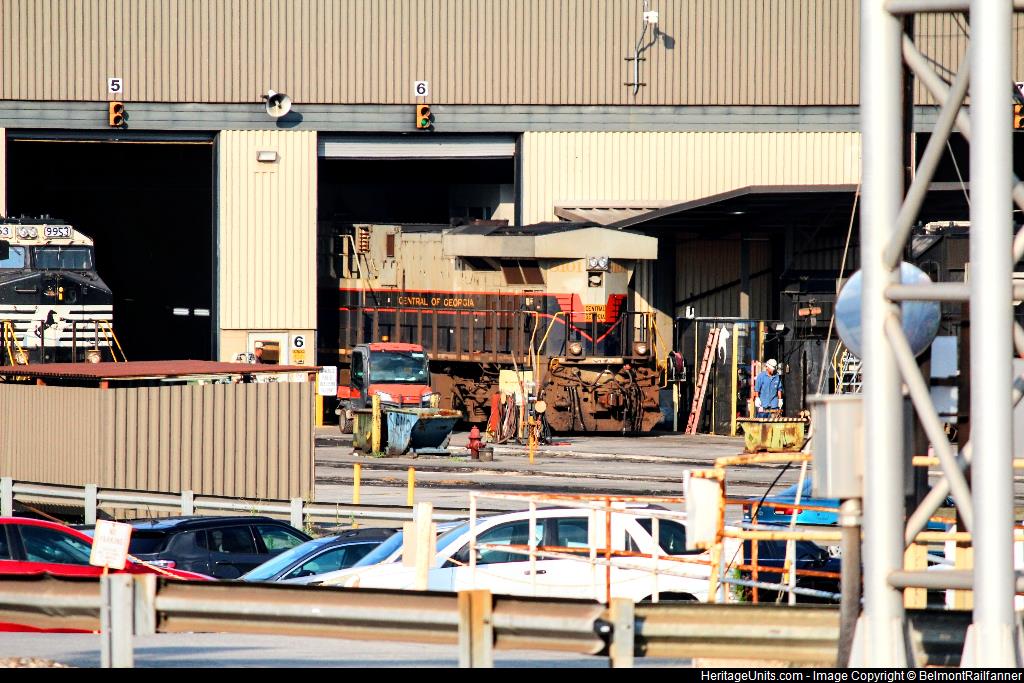 Sitting at the roundhouse in the shed with the long hood sticking out.