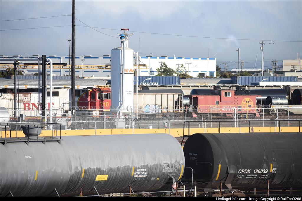 BNSF 710 Warbonnet tucked in tight at the BNSF Richmond engine facilities. Bonus catch was the ATSF 999785 caboose still in service on yard duty.