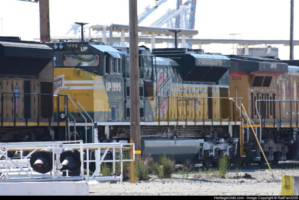 UP 1995 C&NW Paint SD70 ACe mid-consist at Oakland Engine Facilities.