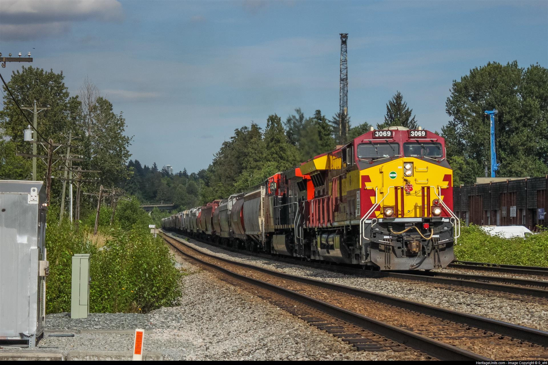 CN 3069 on the point of an unknown loaded grain train bound for North Vancouver, BC