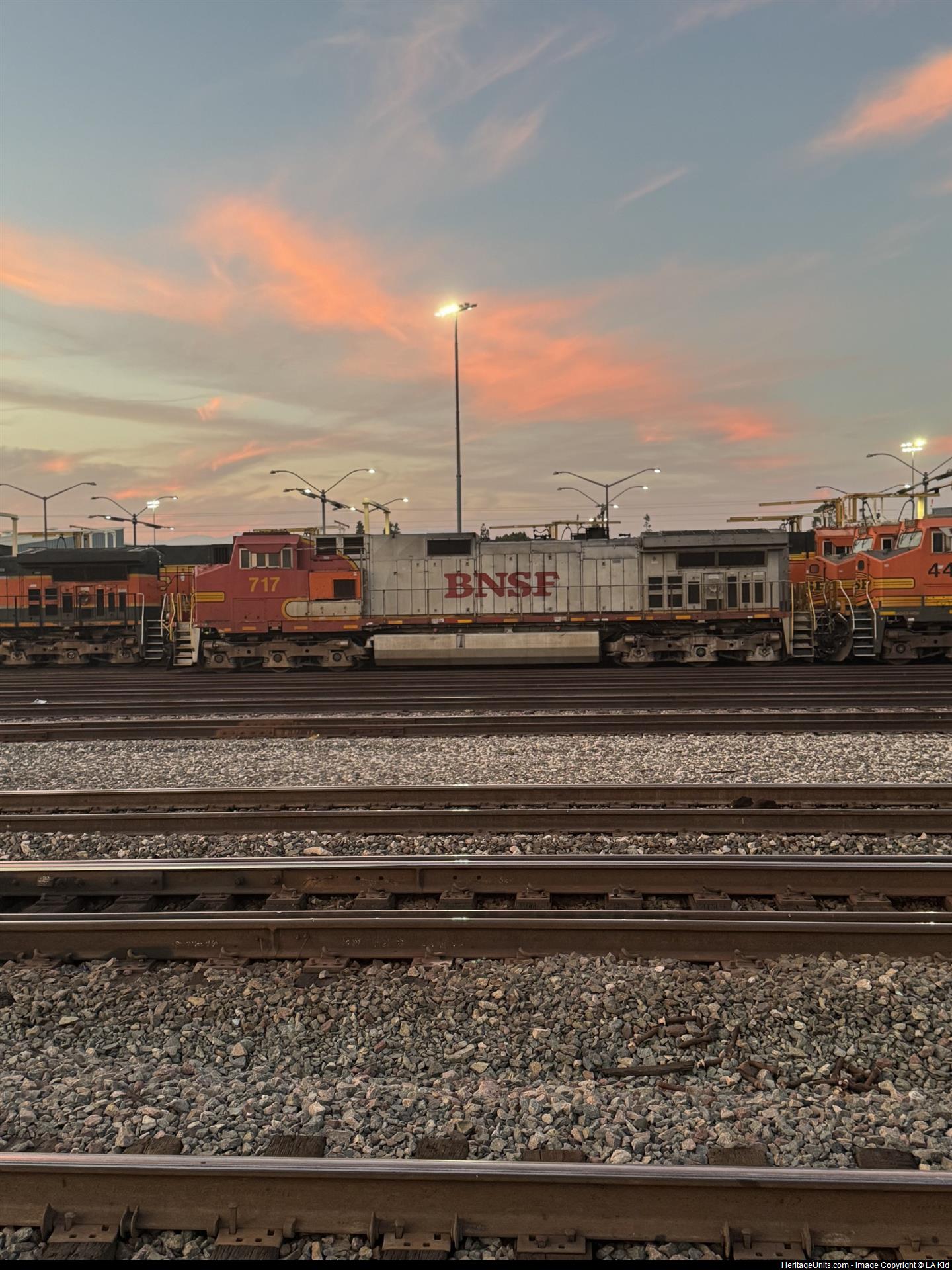 BNSF #717 sits at Commerce Locomotive Facility visable from the Metrolink Station. The LA Kid, 8/4/25