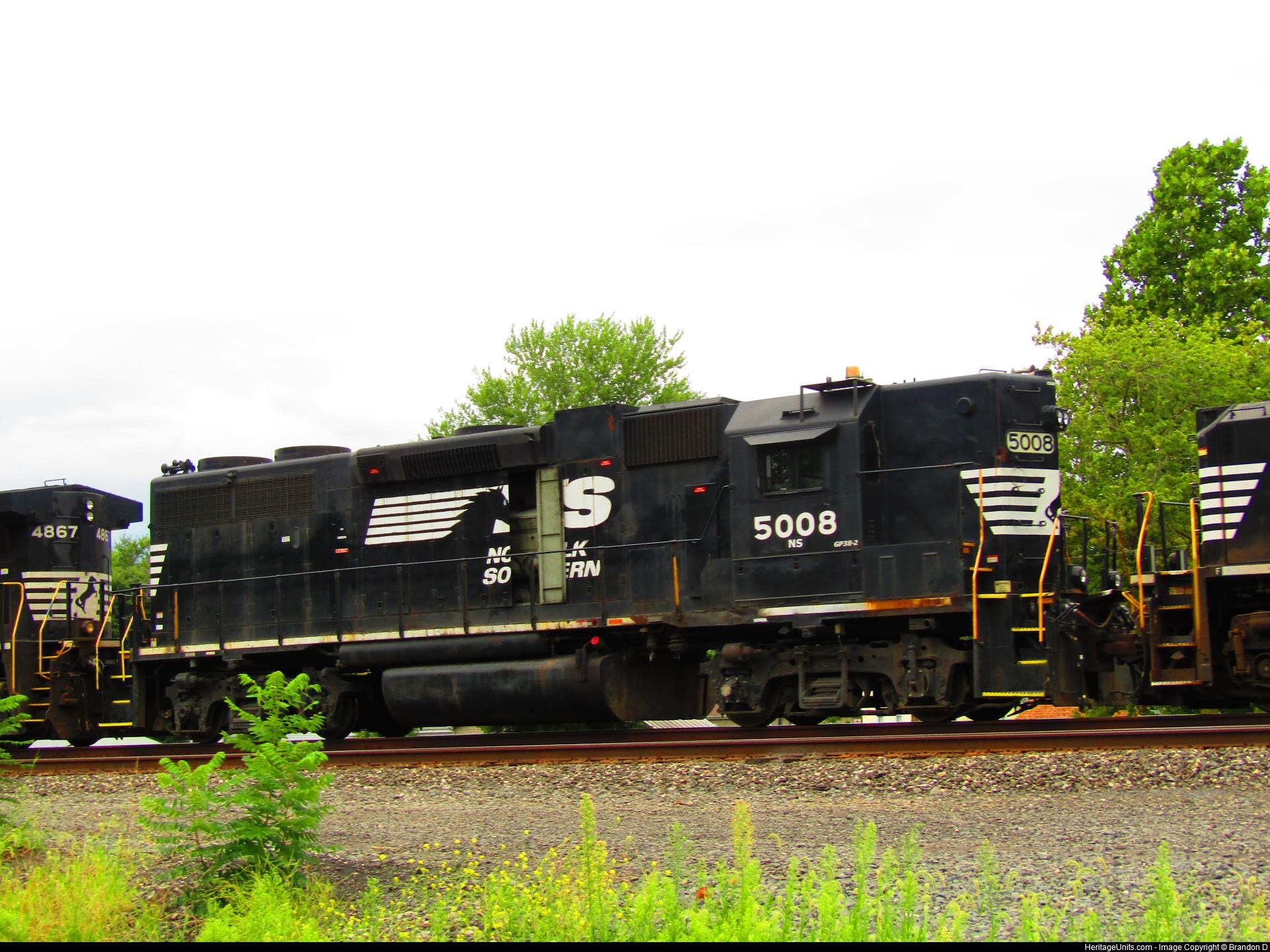 NS 5008 trails 2nd on NS 359 as it comes off the NS Huntington District and heads west on the Chicago Line in Butler, IN