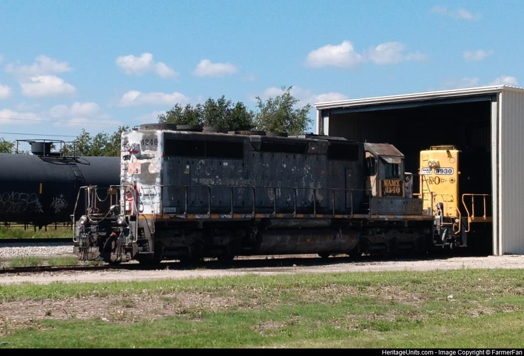 WAMX 4246 sits on the power track at the K&O yard office and shop facility in Yaggy, KS.
