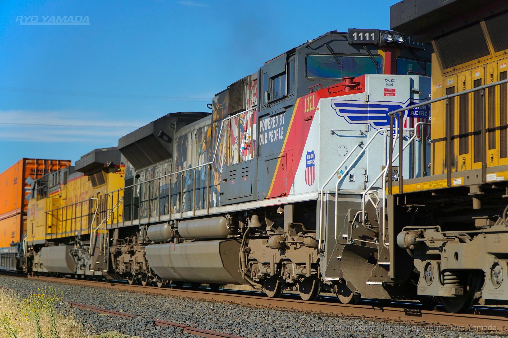 UP 1111 trailing on ZBRLC-3 past the Siemens Facility. Florin, CA.