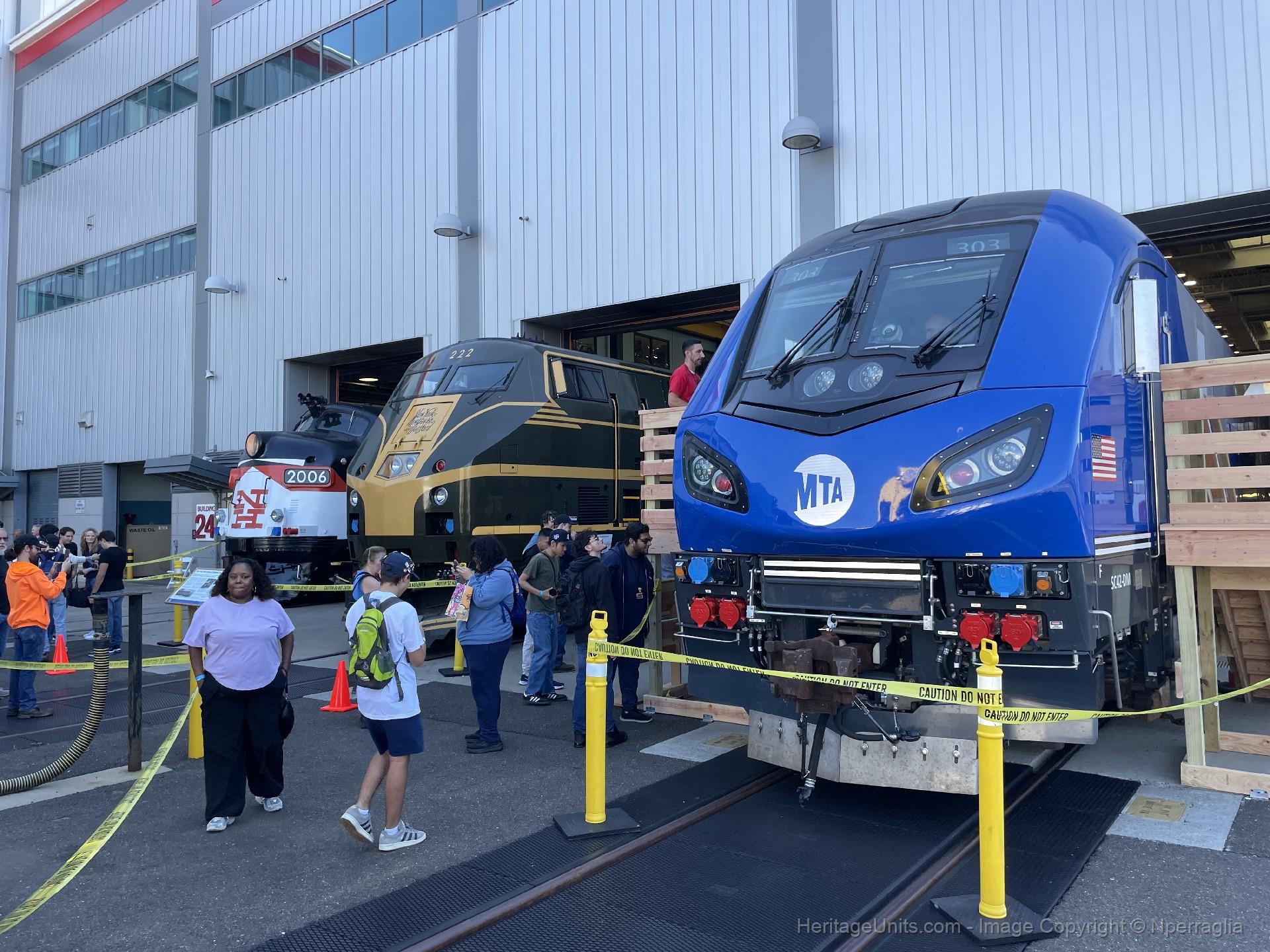Metro North 222 New York, New Haven, and Hartford with one of Metro Norths newest charger Locomotive 303 and New Haven FL9 2006 on Display in Metro Norths Open House