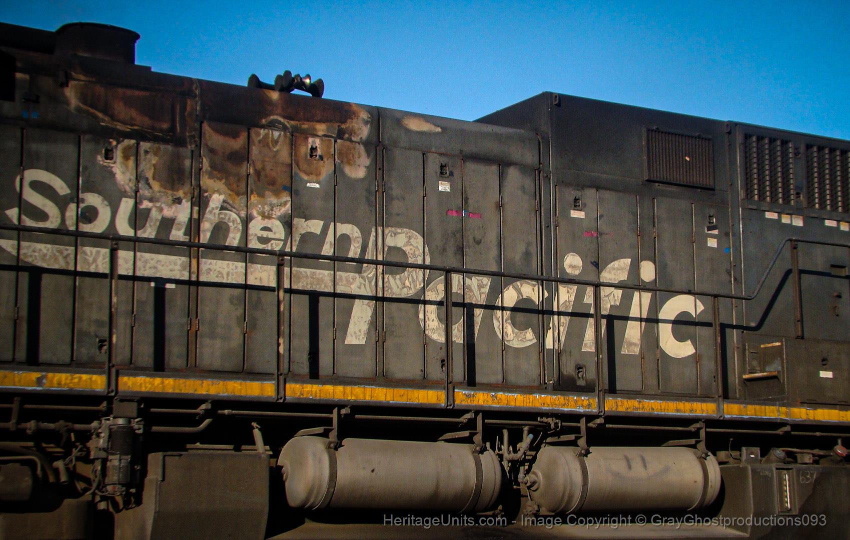 SP 6378 trails on CPKC 968, passing downtown Tallulah