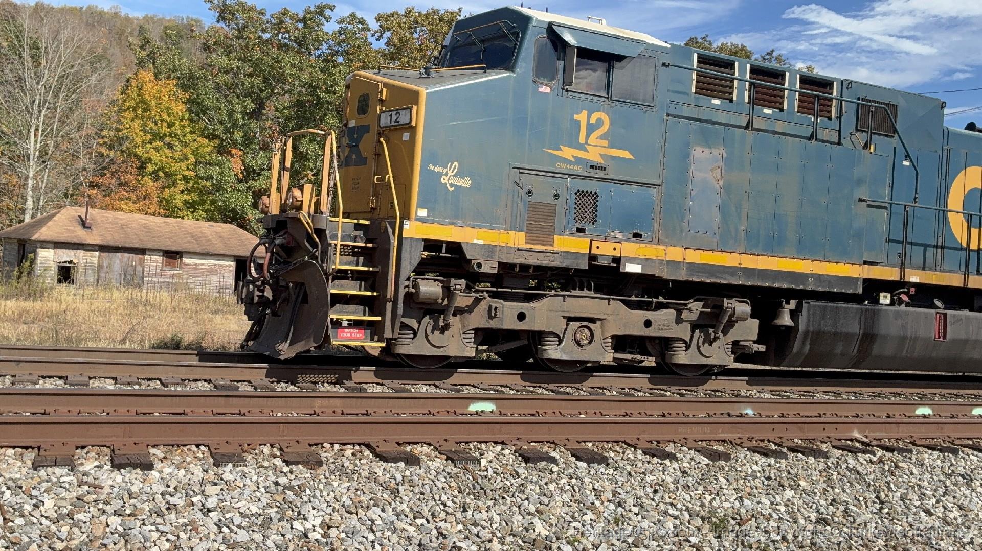 Csx #12 flying back towards connellsvile to help the next eastbound down sand patch on 10/18/25
