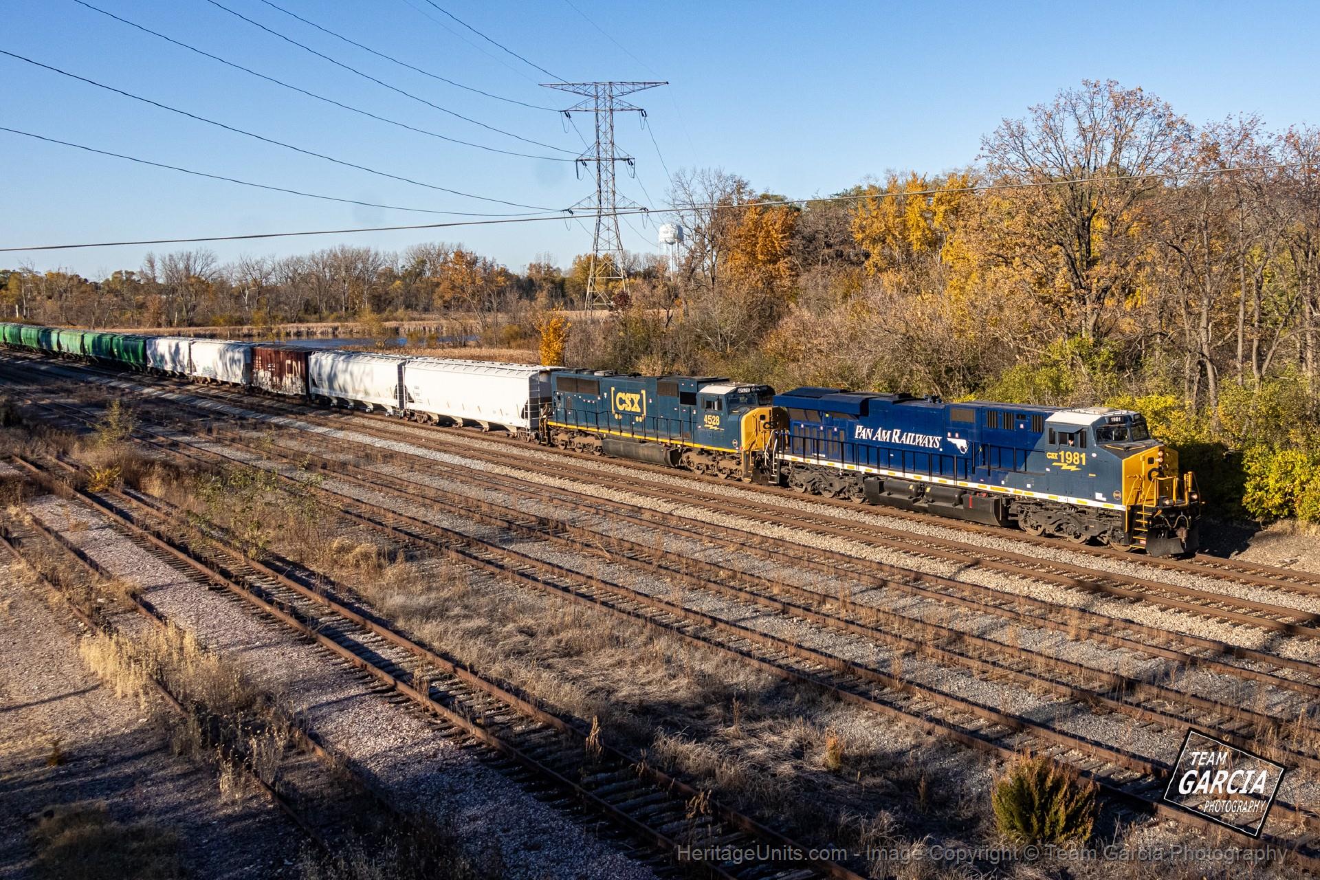 CSXT 1981 (Pan American Railways) pays a visit to the CN leading the charge on CN A49081-05, passing the Illinois Prairie Path Bridge in West Chicago, IL. Can knock off yet another CSX heritage unit on foreign rails off my list!
