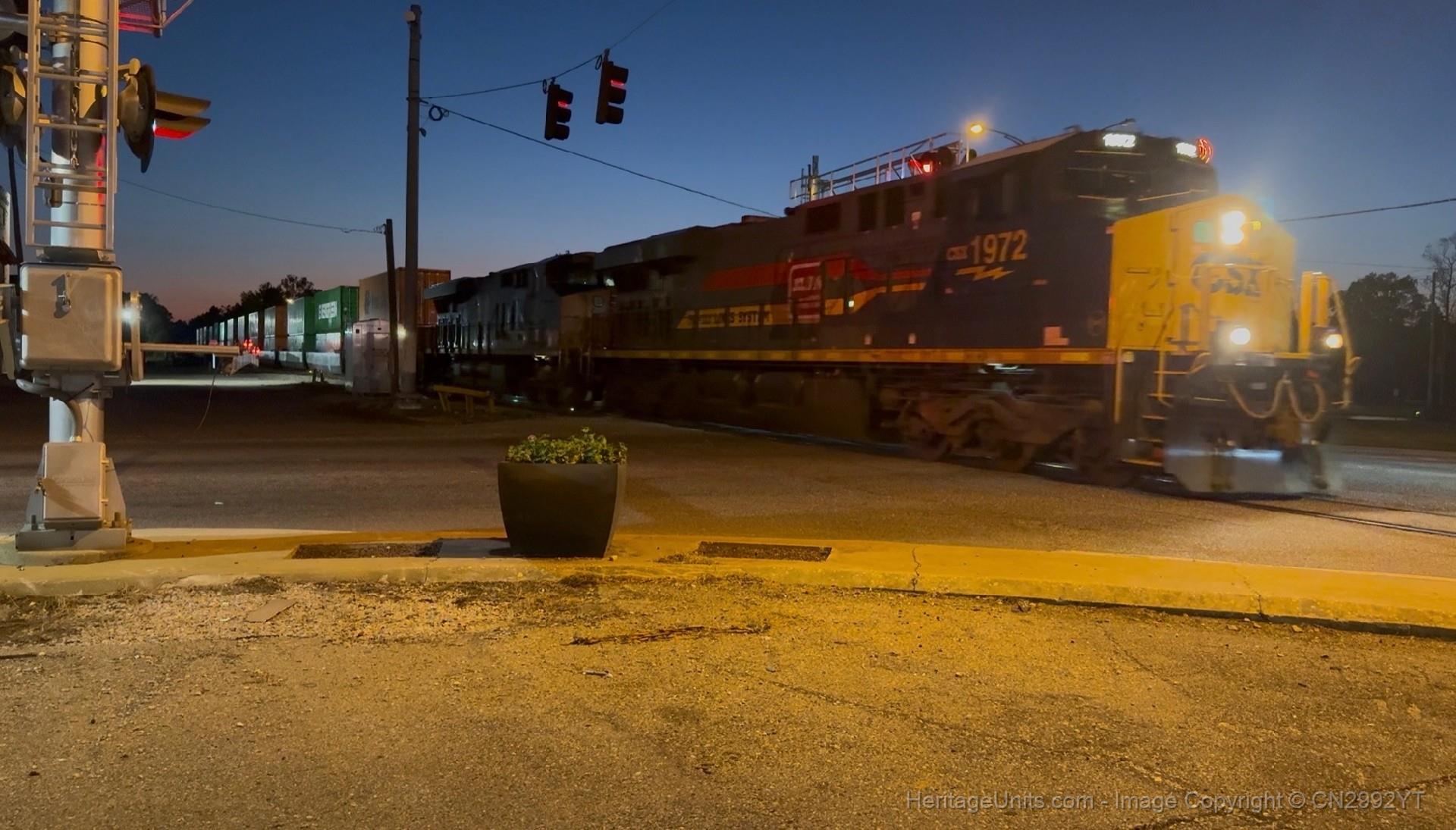 CSXT 1972, Family Lines Heritage Unit, pulling a Waycross-bound manifest north through Brewton Alabama. 11/08/2025.
