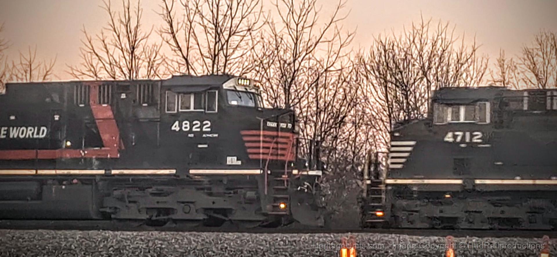 NS 4822 stopped while a coal train passes it.