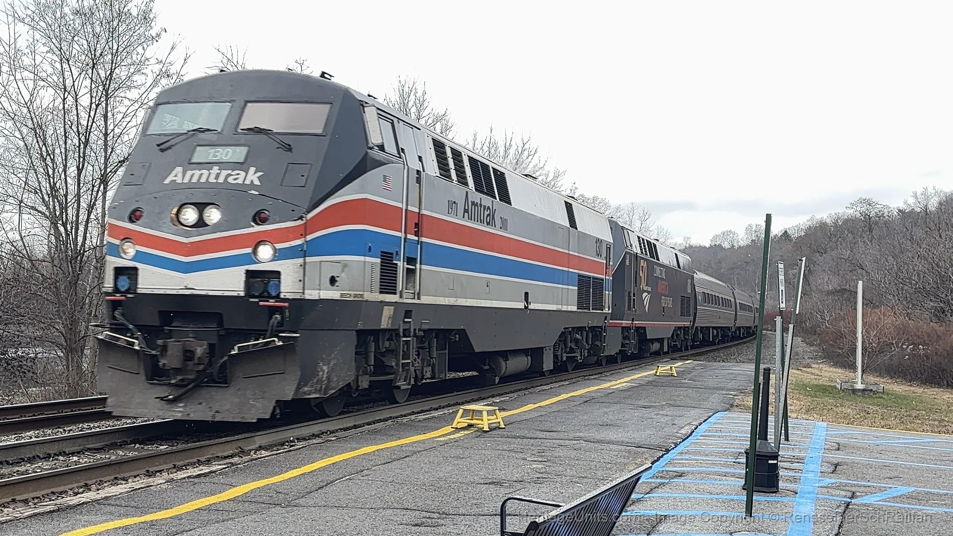 Amtrak 130 leads Amtrak 100 on EB Lake Shore Limited #48 Amsterdam Station