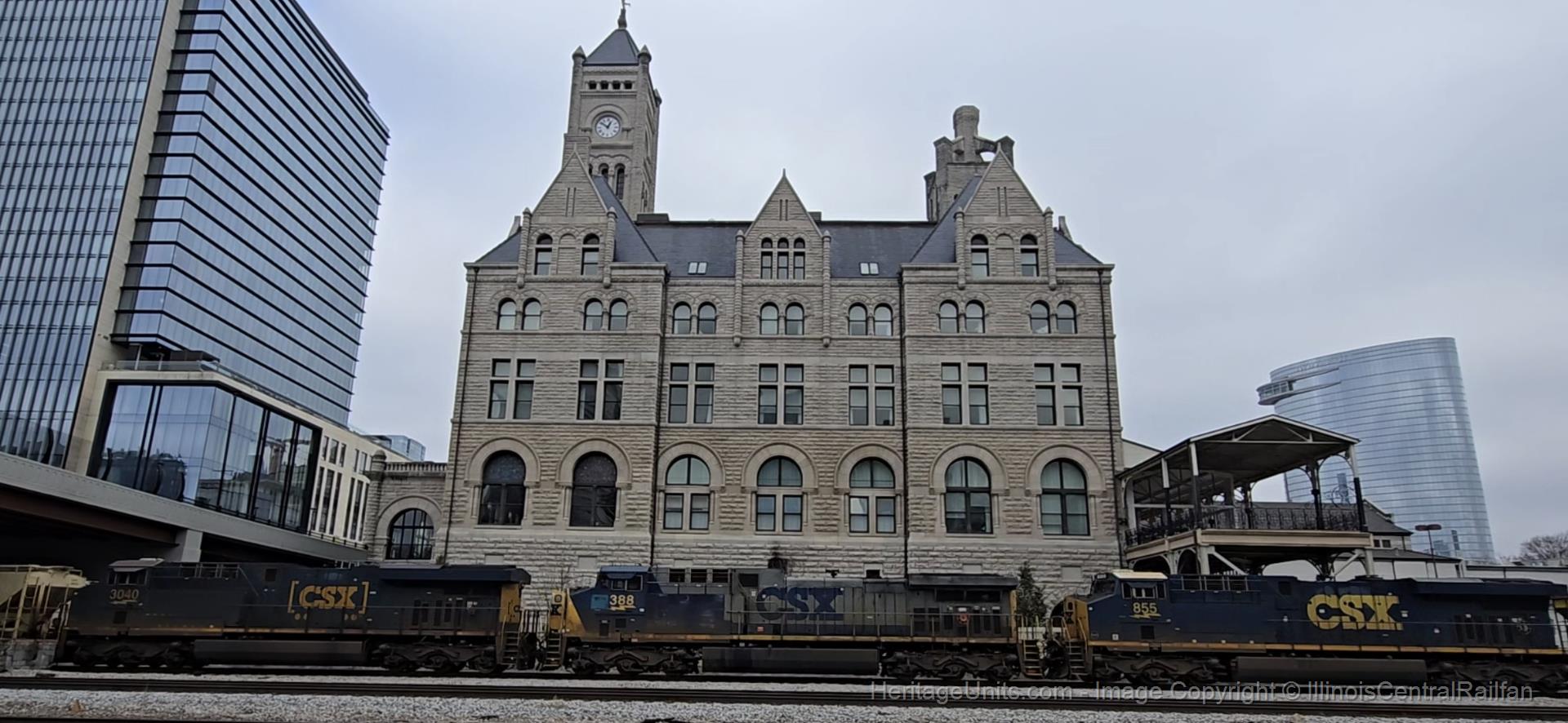 csx 388 between two other engines in front of Union Station