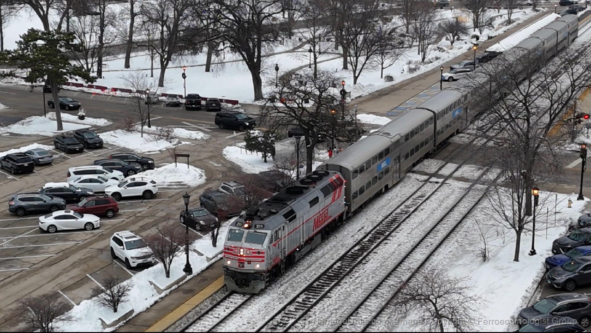 METX211 Burlington Route leads the holiday train west bound for Aurora, IL