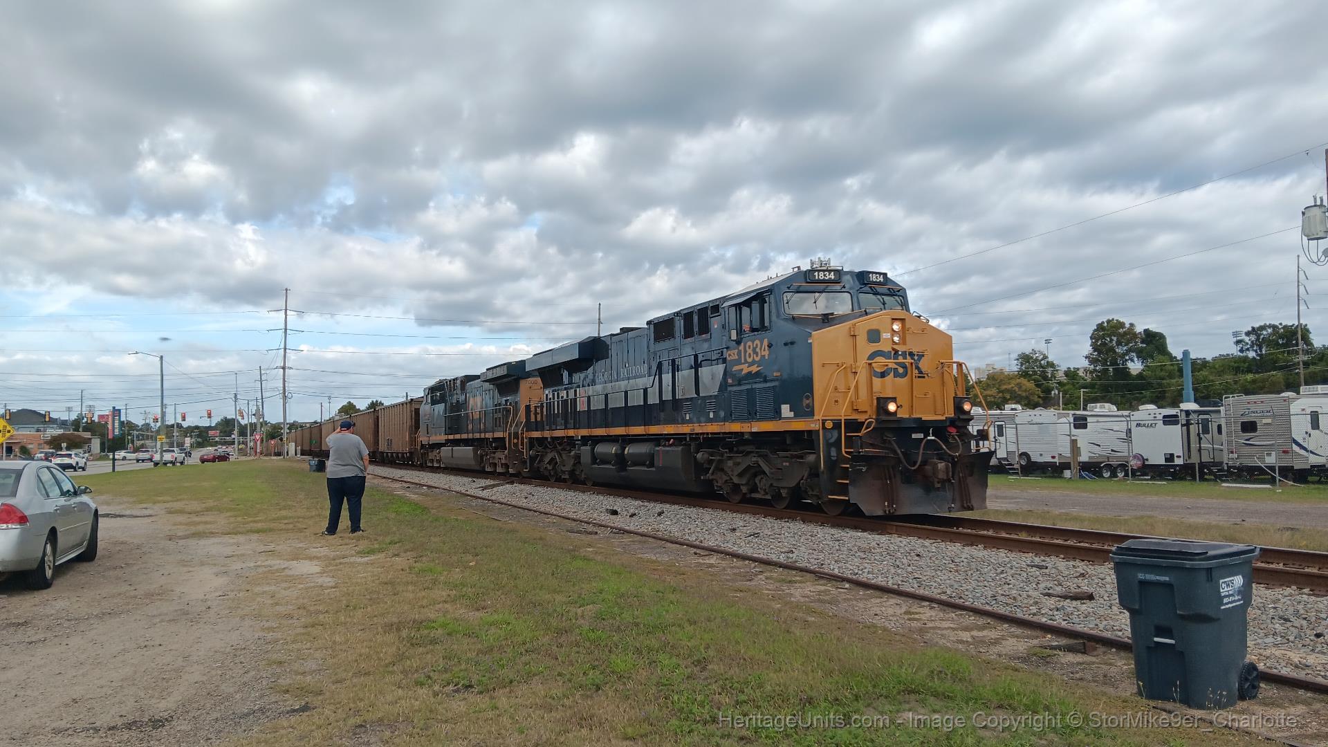 CSXT1834 leads C319 into the NS Andrews Yard to wait for departure for Cross, SC. Picture was taken at George Rogers Blvd, across the street from the South Carolina State Fairgrounds.